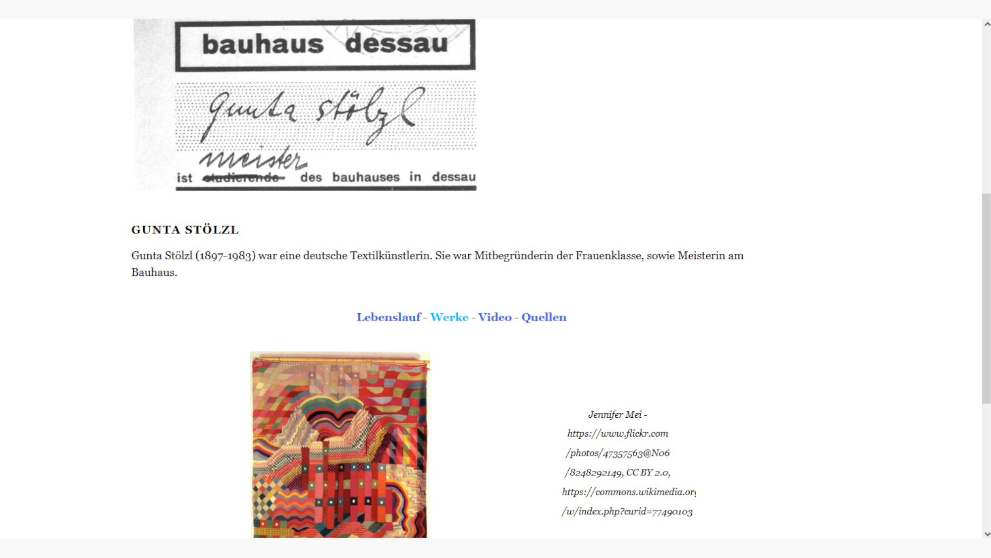 Fragen, über die sich die Schüler*innen Gedanken machen: Wie und auf welche Weise präsentiere ich die Künstler*innen? Wie bereite ich die Informationen auf und was wähle ich aus? Nutze ich Bilder, Videos, Sound, Verlinkungen zu anderen Websites …? Woher kommen meine Informationen? Habe ich die Nutzungsrechte (lizenzfrei, Bildrechte, Creative Commons, usw.) an den Quellen?