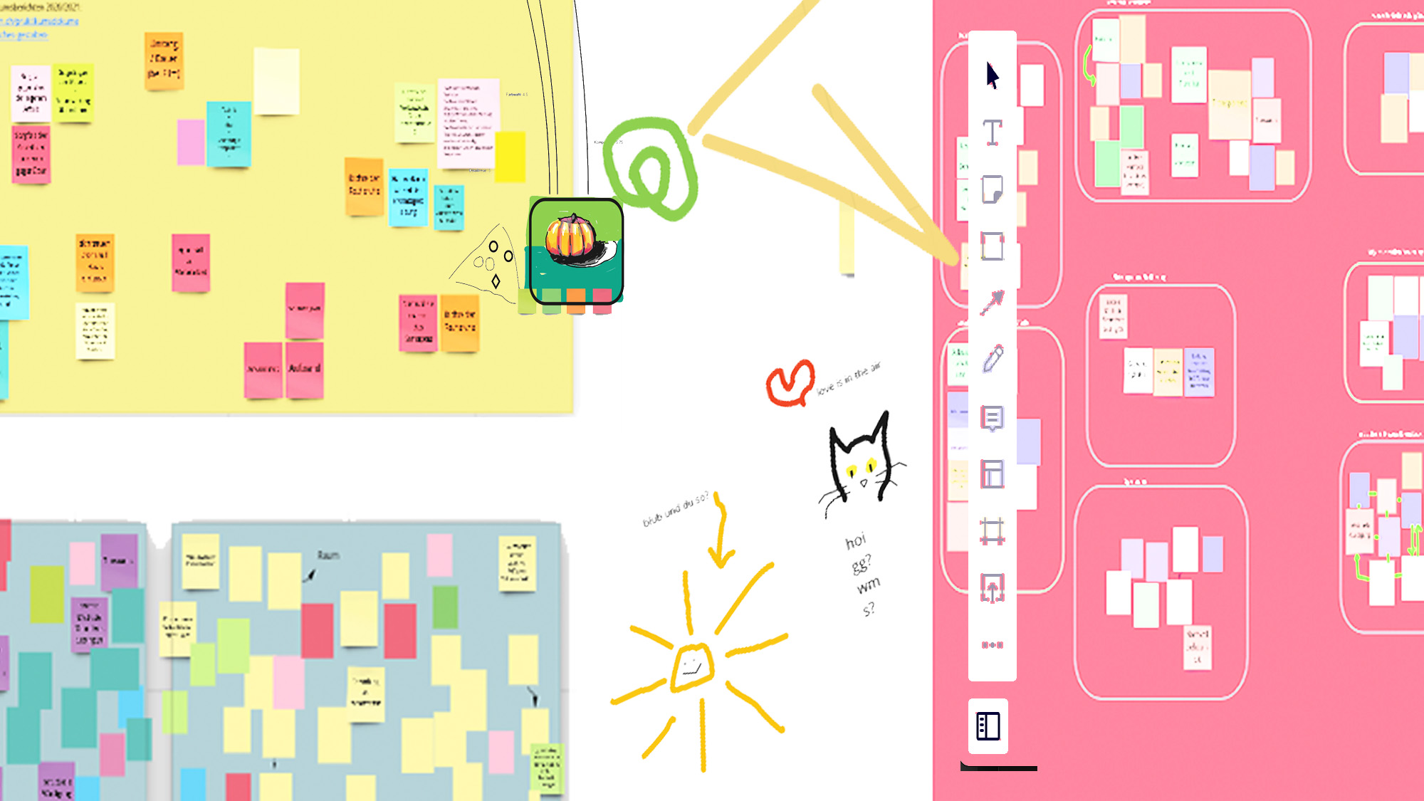 Ez a minifeladat a Miro távoktatási eszközt használja, hogy produktív módon ellensúlyozni tudja ezt a helyzetet. Az elképzelés nem is lehetne egyszerűbb: A résztvevőket arra kérik, hogy egy adott “kereten” belül bizonyos témák, kérdések vagy beszélgetésindítók kapcsán írják fel a számukra fontos szempontokat és fogalmakat öntapadós cetlikre, és egyidejűleg reagáljanak egymásra. Mindez hangtalanul történik. A feladat elfogadja a hallgatás korlátozását a kollektív kíváncsiság és a koncentráció érdekében.